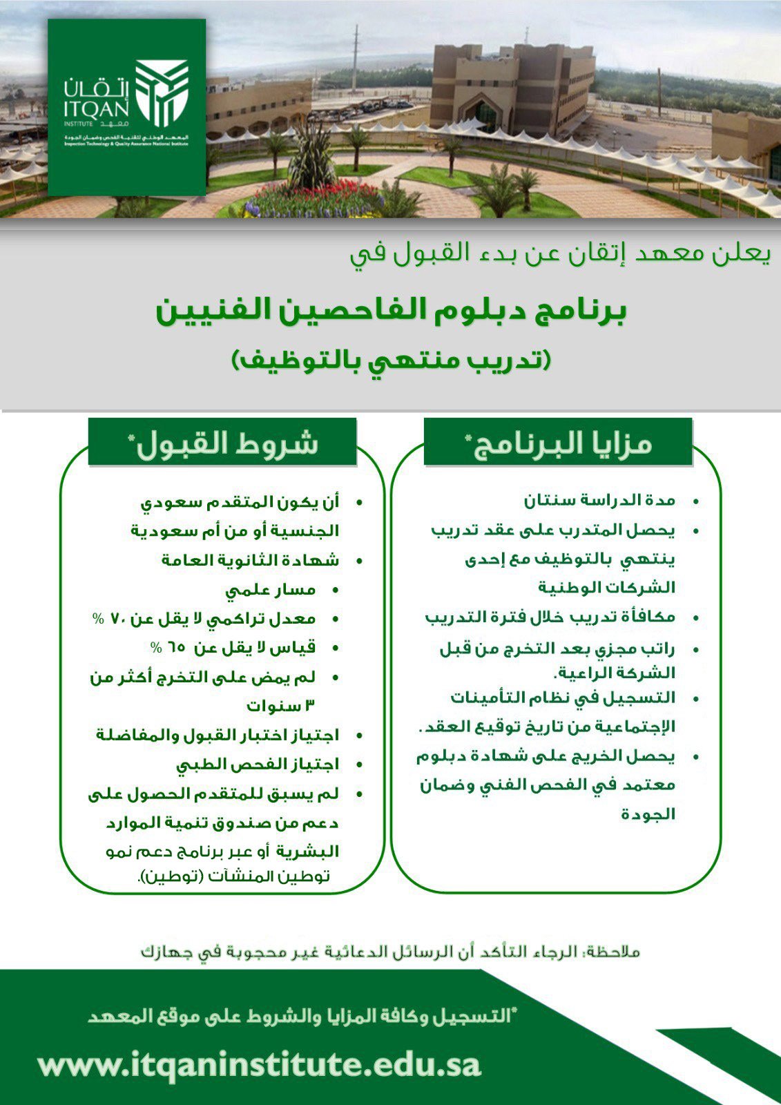 Itqan Institute On Twitter يعلن معهد إتقان عن بدء القبول في برنامج دبلوم الفاحصين الفنيين Https T Co Vqfwm0cctg