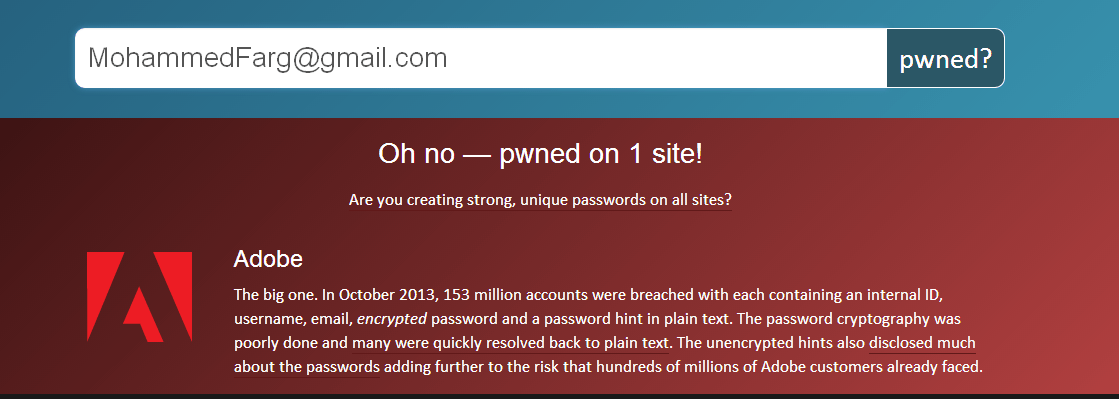 موقع يخبرك إذا كان إيميلك تم تسريبه على شبكة الانترنت عند إختراق المواقع التي إشتركت بها