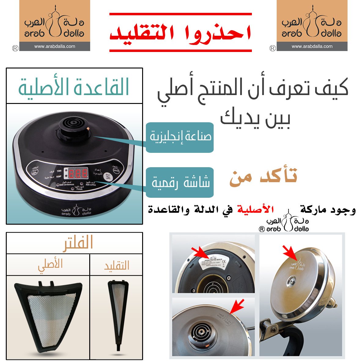 د لــ ـة ا لــ عـ ر ب A Twitter احذروا التقليد كيف تعرف ان المنتج أصلي بين يديك تأكد من وجود ماركة دلة العرب الأصلية في الدله والقاعدة Https T Co Uizvkgx4ci