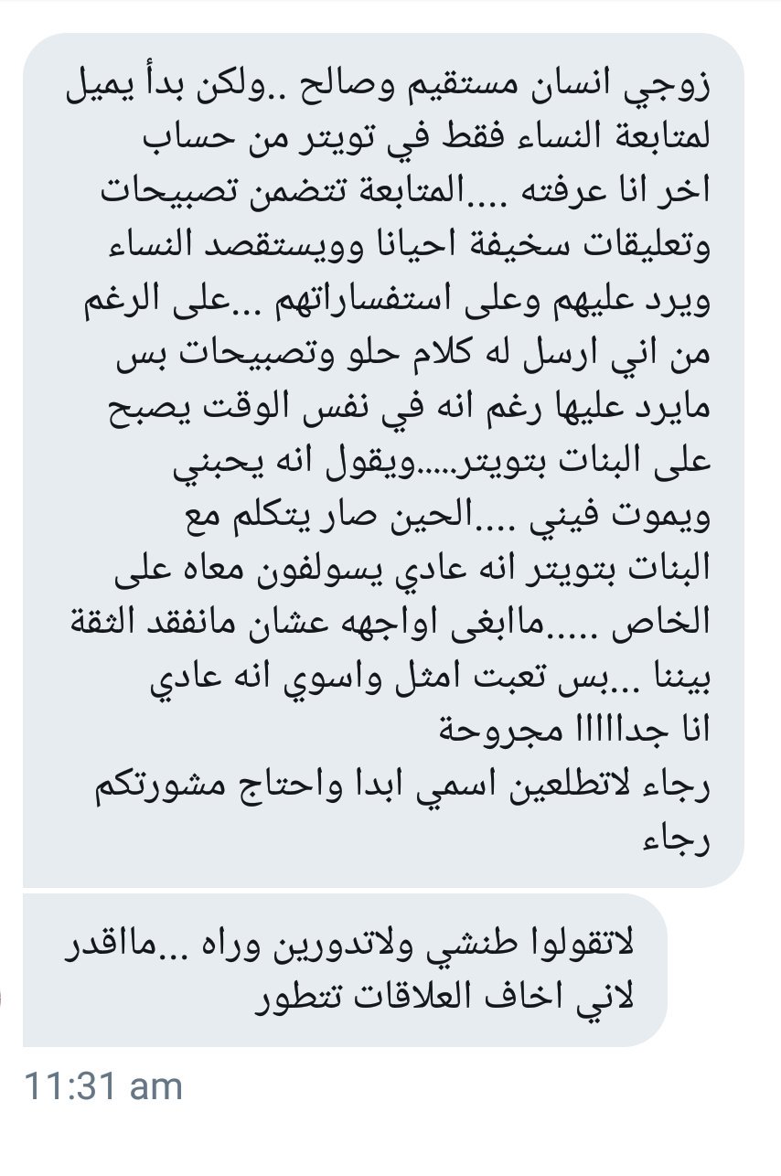 للنساء فقط Twitterren زوجي اكتشفت يكلم بنات في التويتر ومقهوره ما الحل اوجهه ولا اطنش احتاج رايكم سؤال وصلني من احد المتابعات خاص