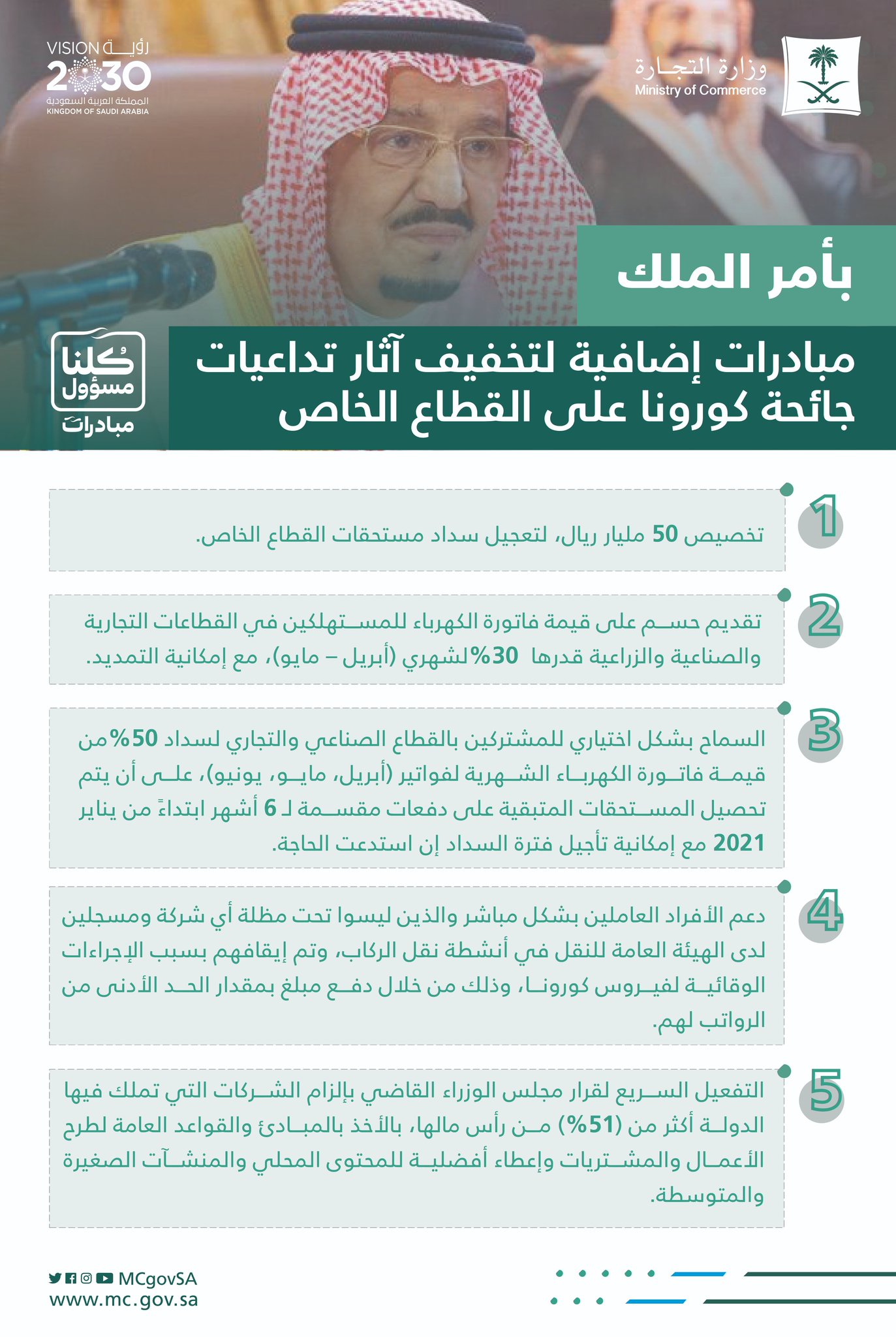وزارة التجارة On Twitter بأمر الملك مبادرات إضافية لتخفيف آثار تداعيات جائحة كورونا على القطاع الخاص