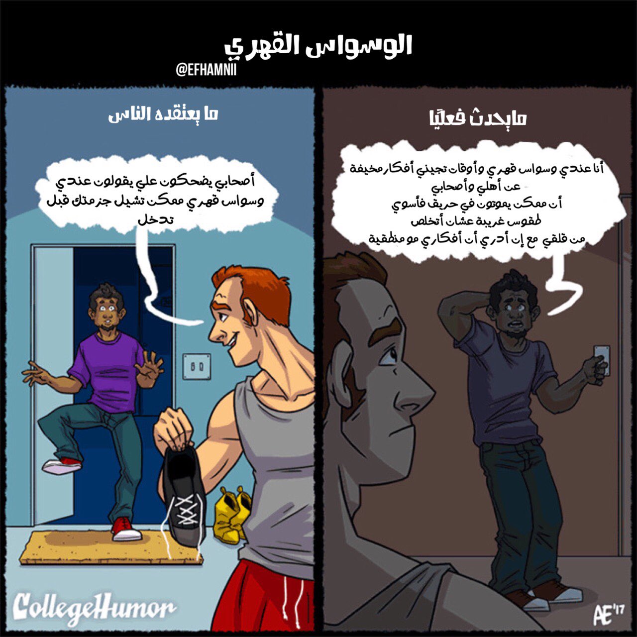افهمني On Twitter مايعتقده الناس عن الوسواس القهري Vs مايحدث فعلي ا كثير ناس تتوقع أن الوسواس القهري هو فقط مرتبط بالنظافة والتنظيم وذي فكرة مغلوطة إتعممت عن الوسواس القهري وهنا جمعنا لكم