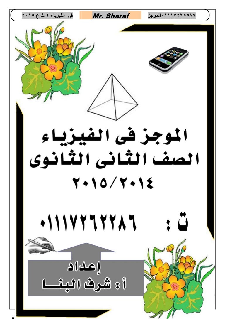 فيزياء ثاني ثانوي ترم أول الموجز في الفيزياء ثاني ثانوي استاذ شرف البنا 2015