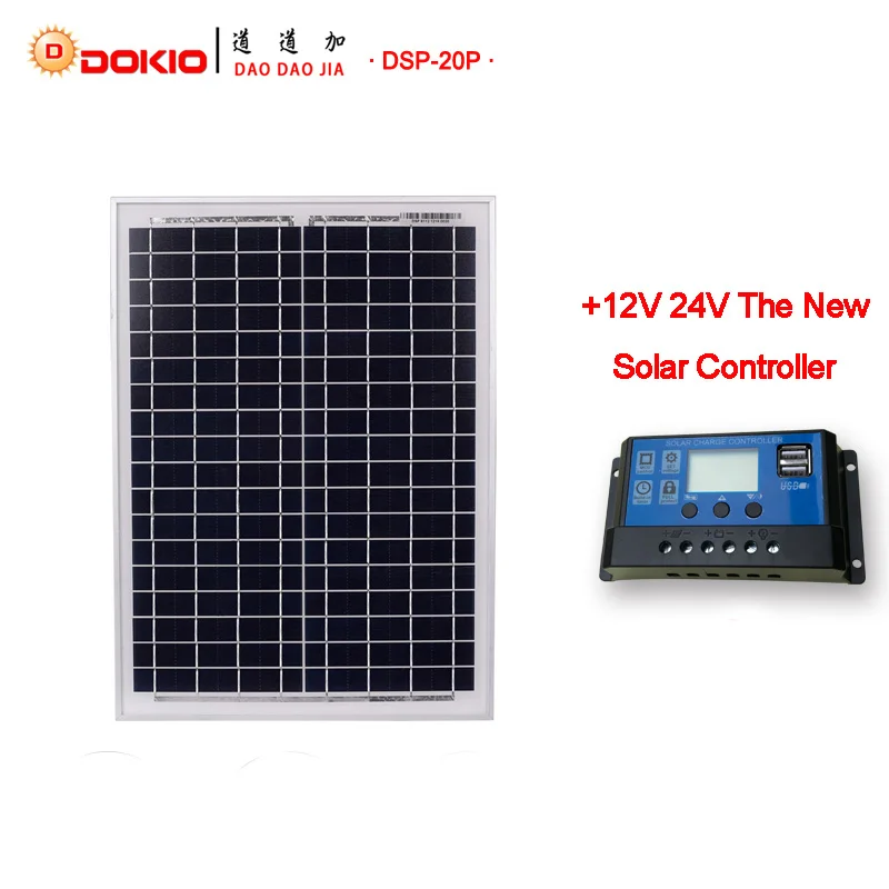 Dokio 12 فولت 20 واط لوح شمسي صغير الصين 460x335x17 مللي متر حجم 18 فولت الشمسية تهمة الكريستالات لوحة شمسية من السيليكون Dsp 20m 20 P في خلايا شمسية من الأجهزة الإلكترونية الاستهلاكية على