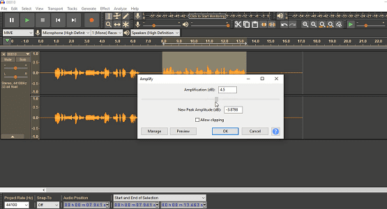 دورة شرح Audacity طريقة رفع صوت المقطع شرح مؤثر Amplify مدونة التعليم المجاني