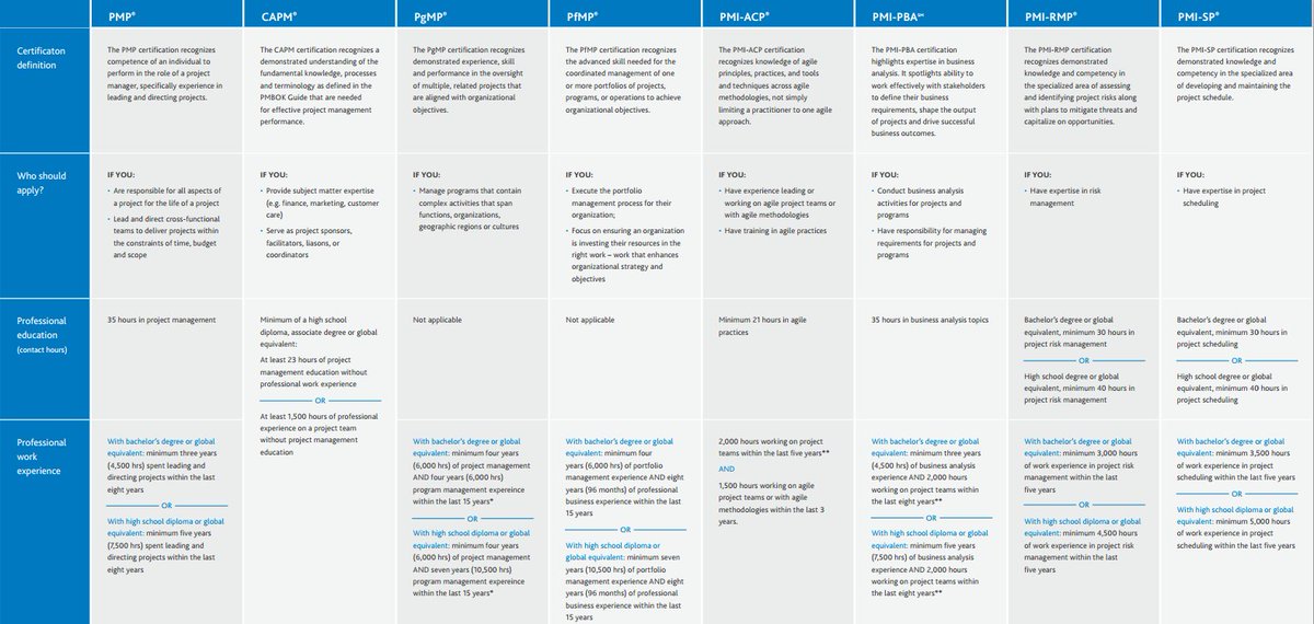 م حسين الشمري على تويتر هنا ملخص لجميع الشهادات الي تمنحها معهد او منظمة ادارة المشاريع الاحترافية Pmi واهم المتطلبات للشهادات Pmp Pm Capm Https T Co Tshqtr7sgb