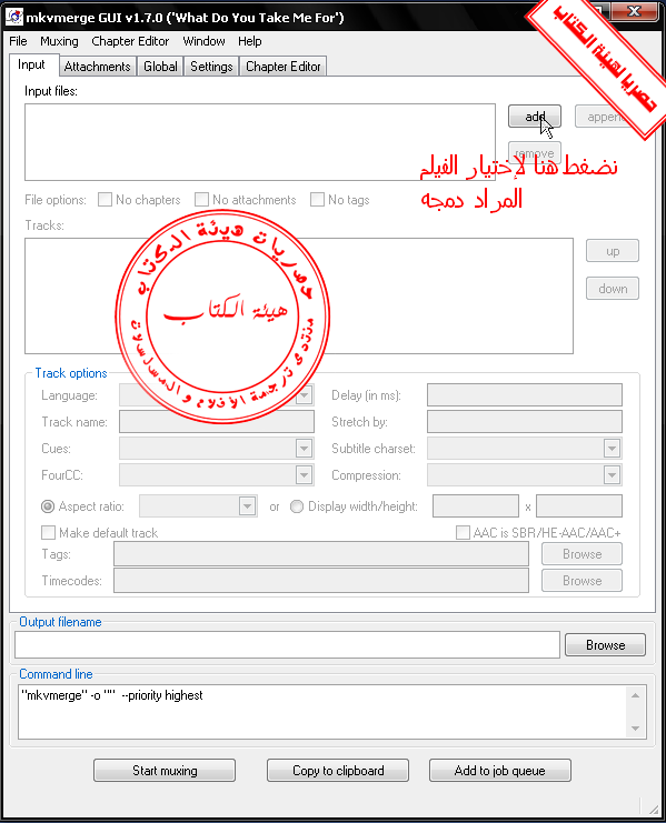 هيئـة الكتاب تقدم برنامج Mkvmerge Gui لدمج الترجمة مع الفيلم روابط للتحميل شرح بالصور الكاتب Mega Force ان الحمد لله وحده نحمده و نشكره و نستعينه و نستغفره و نعود بالله من شرور أنفسنا و من سيئات أعمالنا من يهده الله فلا مظل له و من يظلل فلن تجد له وليا