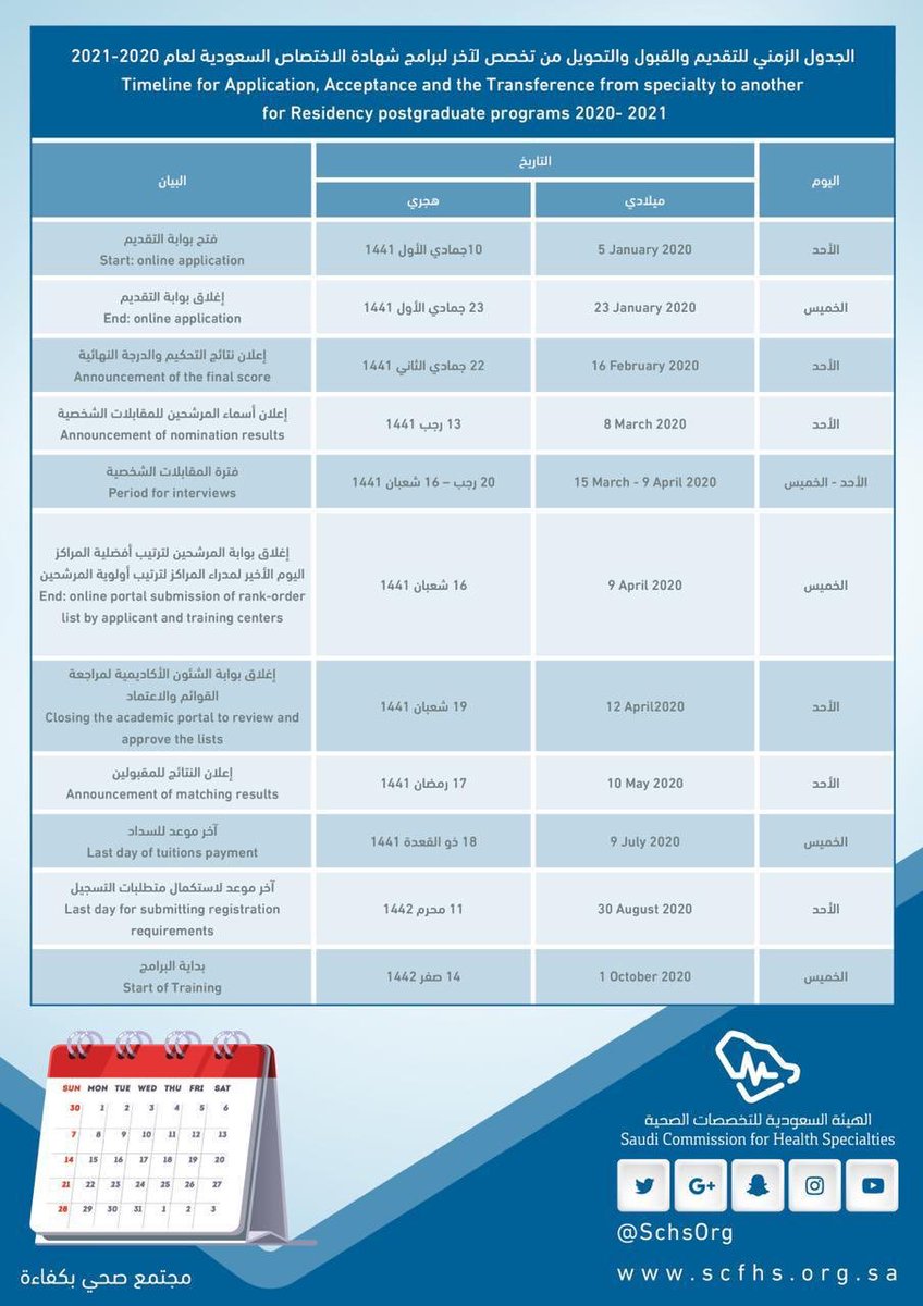 هيئة التخصصات الصحية On Twitter هيئة التخصصات الصحية تعلن عن الجدول الزمني للقبول ولتغيير التخصص لبرامج شهادة الاختصاص والدبلوم السعودي للعام الأكاديمي ٢٠٢٠ ٢٠٢١م تجدر الإشارة إلى أن معايير القبول وآلية المفاضلة هذا العام لم